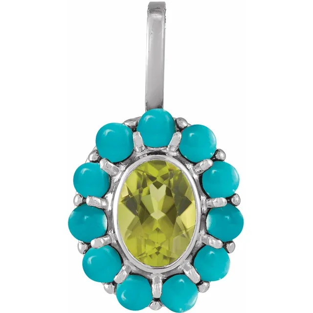 Natural Peridot & Natural Turquoise Halo-Style Pendant