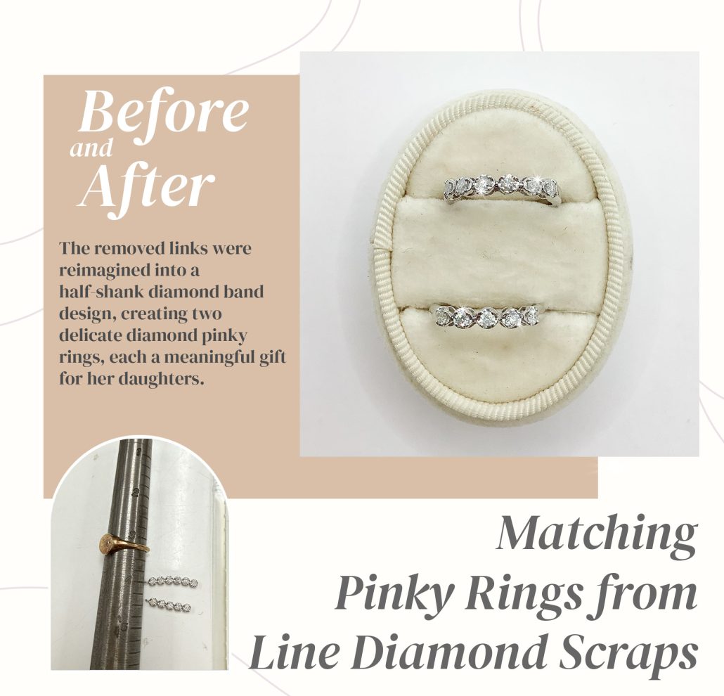 Matching Pinky Rings from Line Diamond ScrapsA client brought in two 14K white gold bezel-set diamond line bracelets to be thoughtfully...