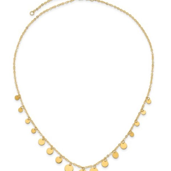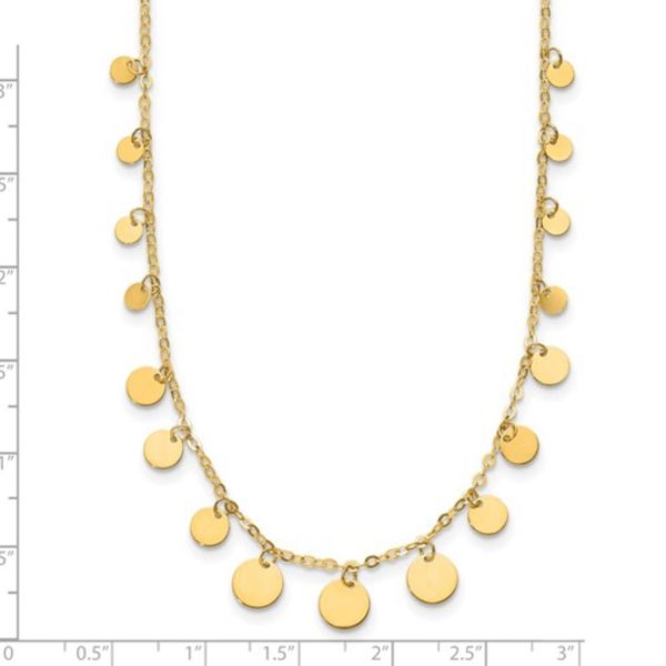 Disc collection: 14 K Yellow Gold Disc Necklace Length: 18”