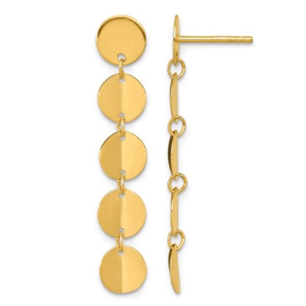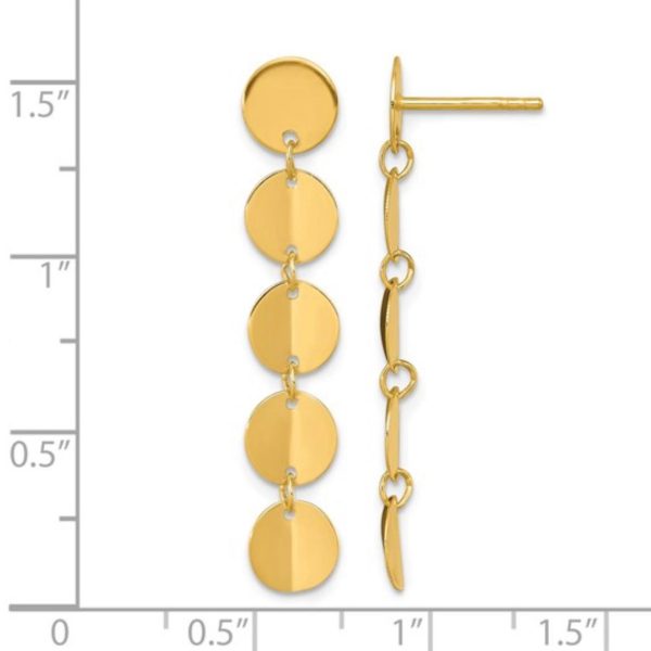 14K Yellow Gold Five Circle Post Dangle Earrings
