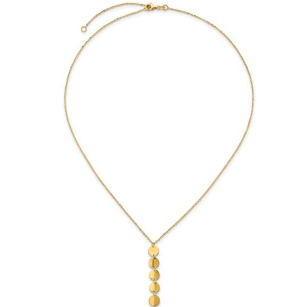 Disc collection: Length: 18” 14K Yellow Gold "Y" Shaped Disc Necklace
