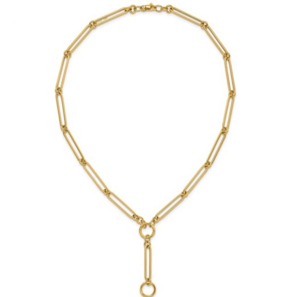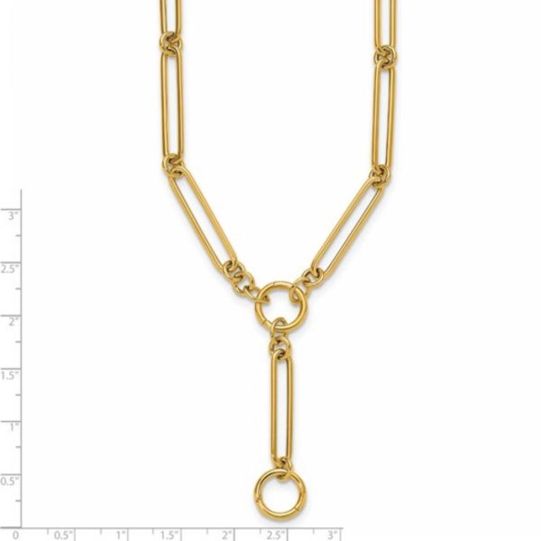 14K Yellow Gold Elongated Link Lariat 18 Inch Necklace