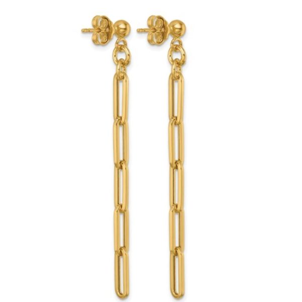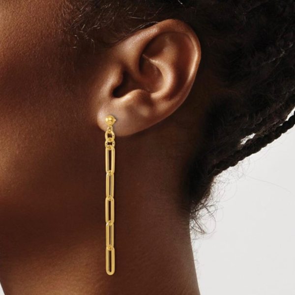 14K Yellow Gold Paperclip Link Post Dangle Earrings