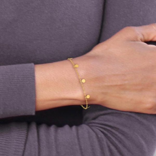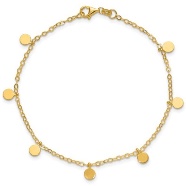14K Yellow Gold Dangle Circle Disc Station 7.25 inch Bracelet