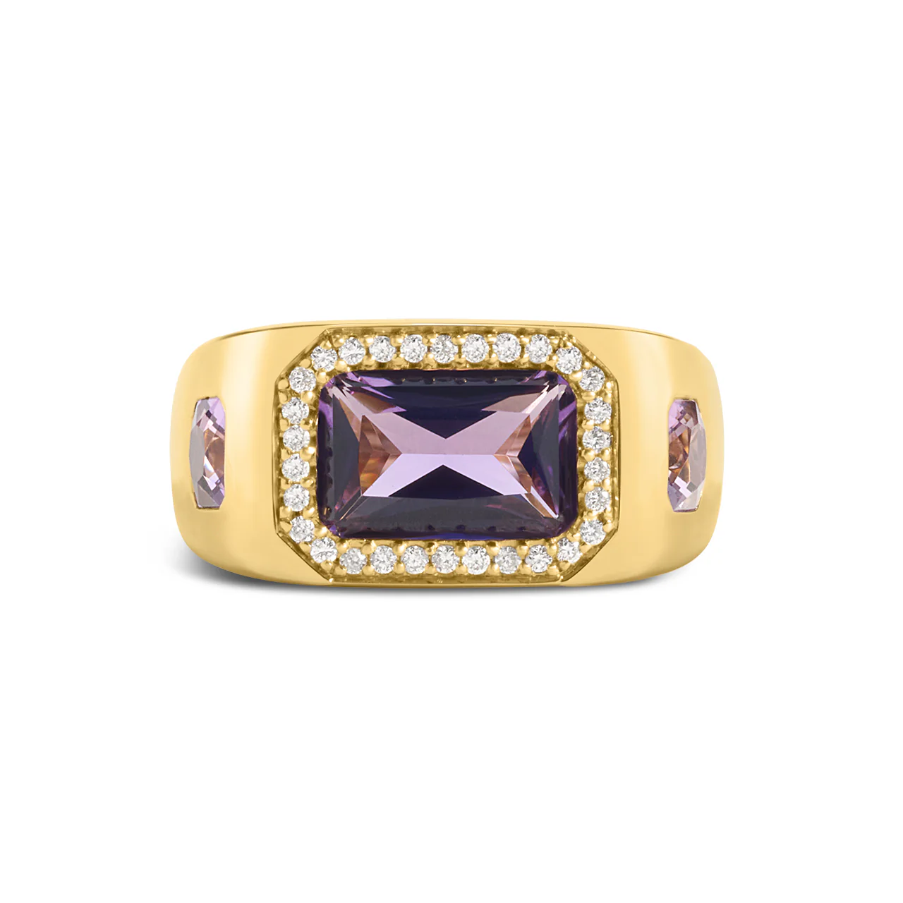 14K Yellow Gold Amethyst & Diamond Signet Ring